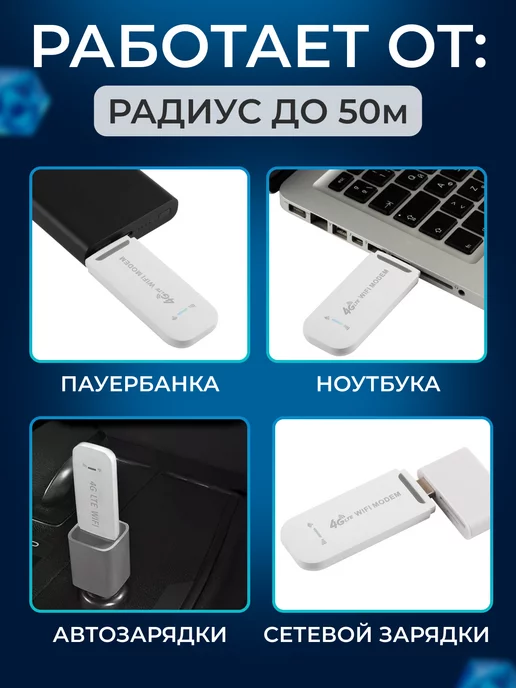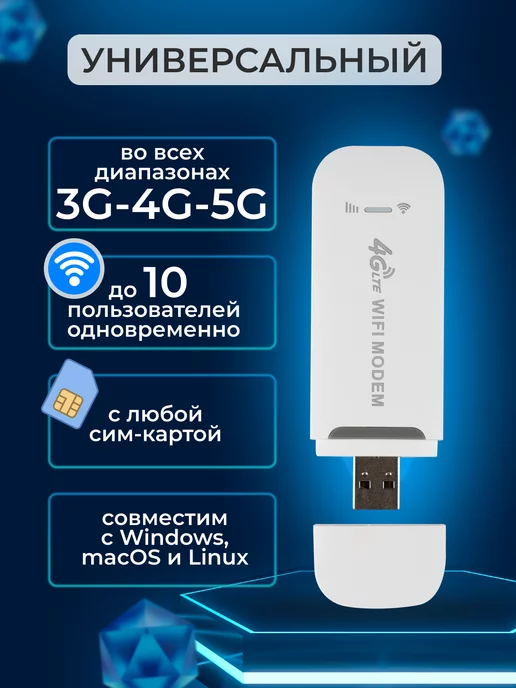 Представляем универсальный 4G модем WiFi для интернета. Он занял место старых 3G гаджетов, и позволяет работать с новыми высокоскоростными сетями 5G. Переносной мини роутер с симкой подключается к мобильному интернету в любой локации, где есть сигнал. Невероятно мощный, с раздачей на максимальной скорости 150 Мб/секунду. Это гарантирует быструю передачу данных по вайфай, дает возможность загружать и смотреть видео, скачивать файлы и играть в онлайн-игры, где бы вы не находились.